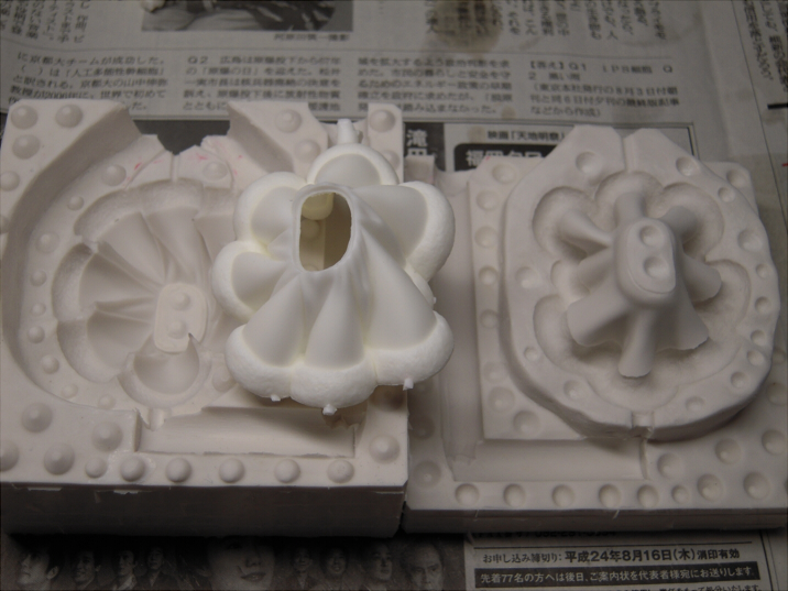 [ お名前 ]タロウ[ コメント ]どうもお久しぶりです。もう型取りですか、早いですね。自分は7月に版権元様の会社へ監修に行ってきます。ところでシリコーンゴムでの型取りですが型の作りによって比重を加えて出した重量と合わない事があります。最初の型は念の為に、比重を加えていない体積分のシリコーンを混ぜて流し足りない様だったら流し込んでいない比重分の重量だけ量り流し込んでみて下さい。そうする事で比重を加えた方が良いかその侭流した方が合ってるか判りゴムを無駄にする事が少なくなりますよ。